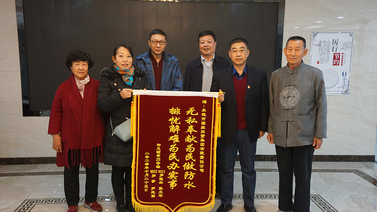 10月28日上午,市区御龙颐景小区的四位居民将一面绣有“无私奉献为民做防水,排忧解难为民办实事”的锦旗送到集团公司,表达了对集团公司出资解决御龙御景小区房屋漏水问题的感谢之情。