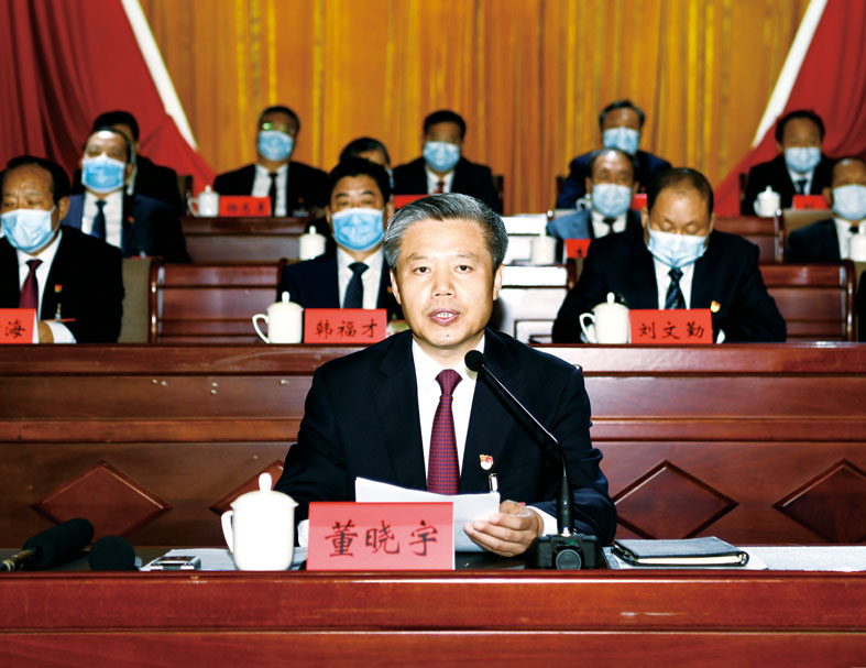 大会完成各项议程后,董晓宇同志发表讲话。他指出,这次大会,是在实现全面建成小康社会第一个百年奋斗目标,向着全面建成社会主义现代化强国的第二个百年奋斗目标迈进的关键时期,召开的一次十分重要的大会。这是一次承前启后、继往开来的大会。全体代表以对党、对人民、对承德事业发展高度负责的精神,精心讨论谋划,积极建言献策,扎实深入工作,共同绘制了高质量发展的“生态强市、魅力承德”的美好蓝图,激发了“一往无前、加快发展”的强大动力。这是一次发扬民主、团结奋进的大会。大会选举产生了坚强有力、志同道合、值得信赖的新一届市委、市纪委,夯实了“一心向党,奋勇向前”的坚强保障。这是一次开拓创新、昂扬向上的大会。大会思想高度统一、纪律空前严明、正气最为浓厚,激发了大家的干事激情、奋斗热情、攻坚豪情,展现了“一马当先,干事创业”的生动气象。