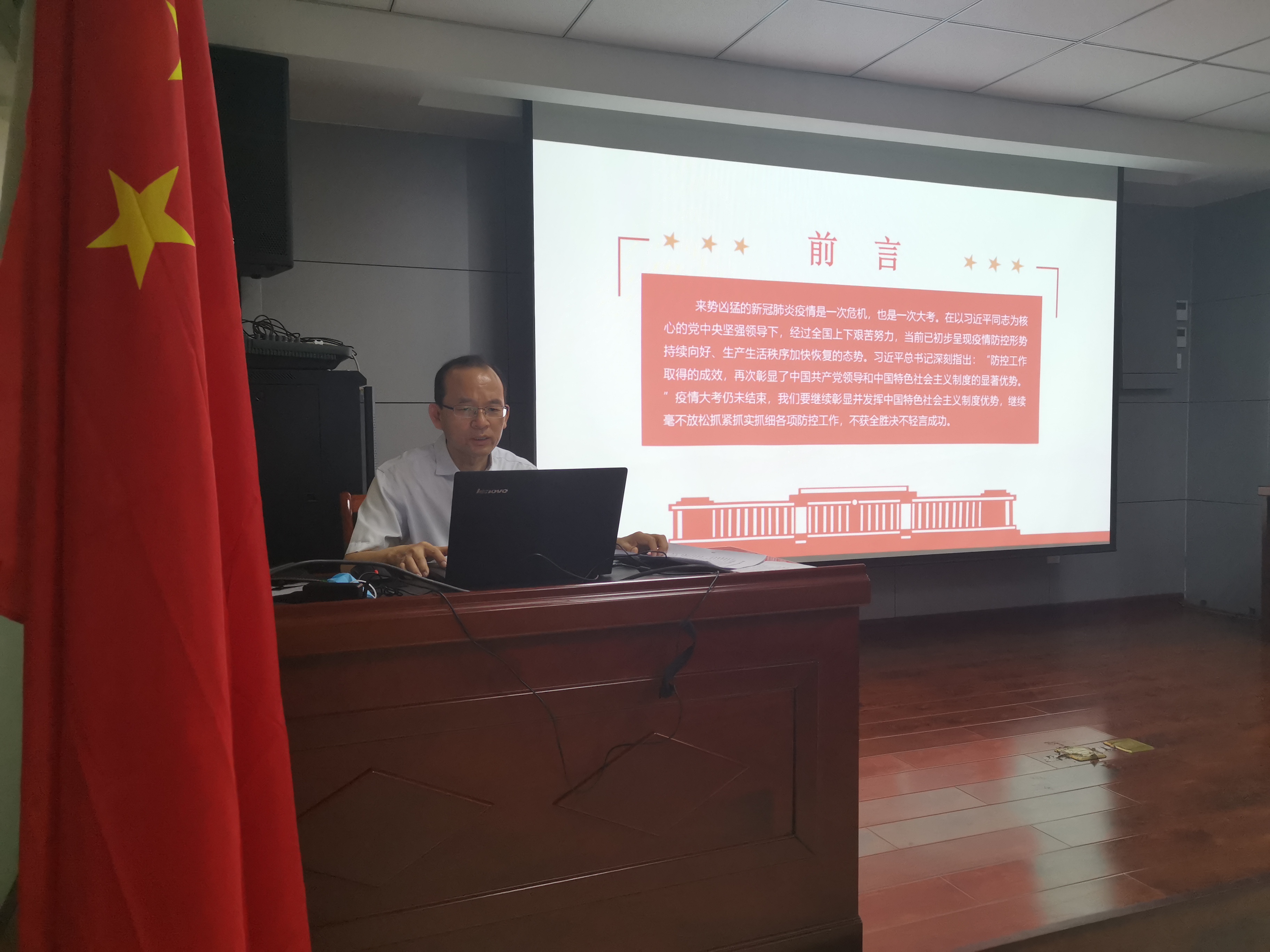 2020年7月2日上午,中共欧冠联赛平台第二支部委员会支部书记焦俊良同志以“在大考中彰显中国特色社会主义制度优势”为题,为全体支部党员和入党积极分子上了一堂别开生面的党课。